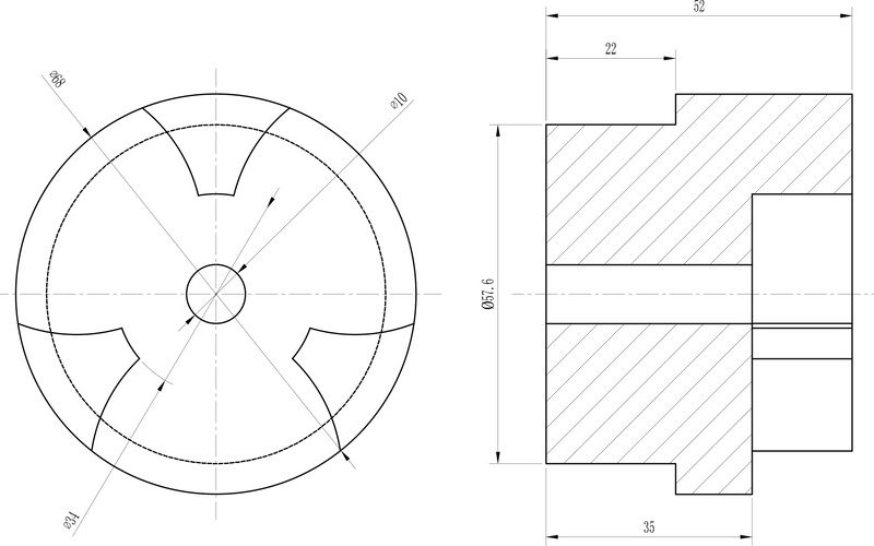 Machining can achieve complex shapes that cannot be pressed by powder metallurgy, such as transverse holes and screw threads.