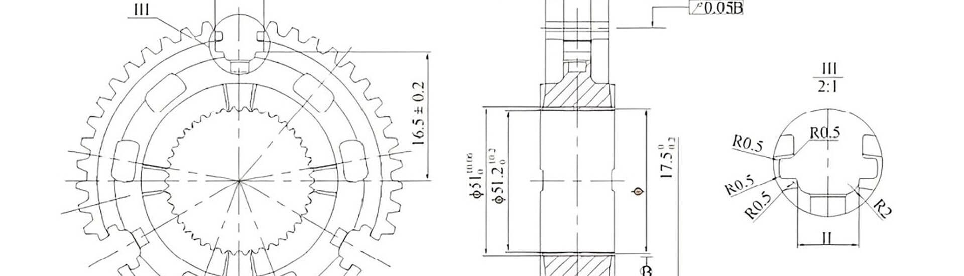 BLUE’s synchronizer hubs feature a tooth profile tolerance of 0.022 and a tooth direction tolerance of ±0.019.